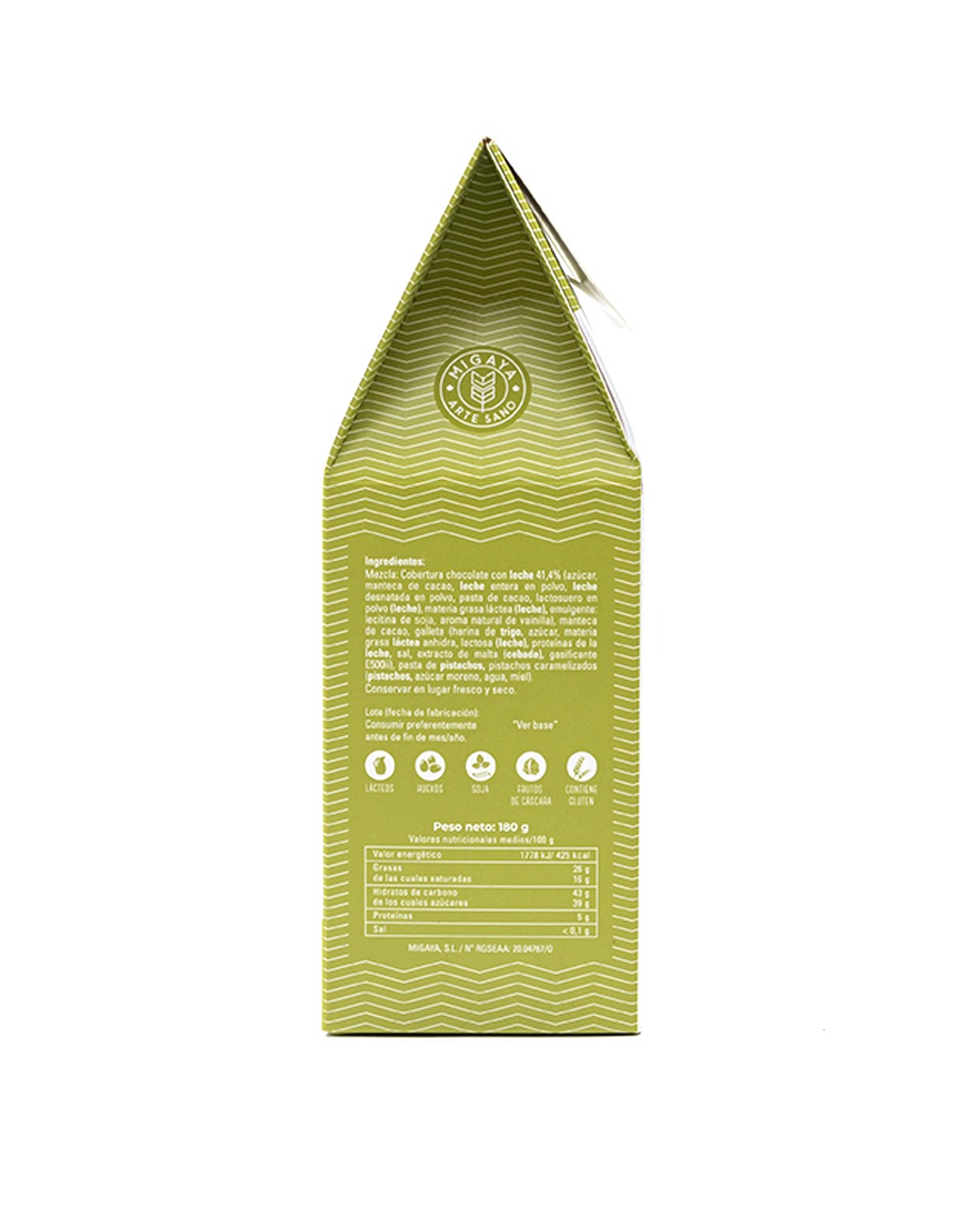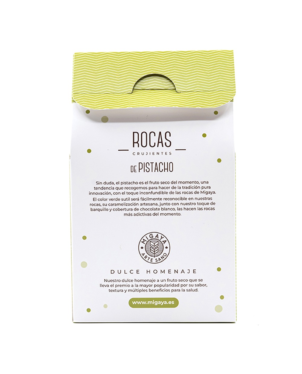 Las Rocas de Pistacho de Migayas son pequeños bocados crujientes elaborados con chocolate blanco, barquillo y pistachos caramelizados. Son ideales para acompañar el café o darte un capricho dulce.